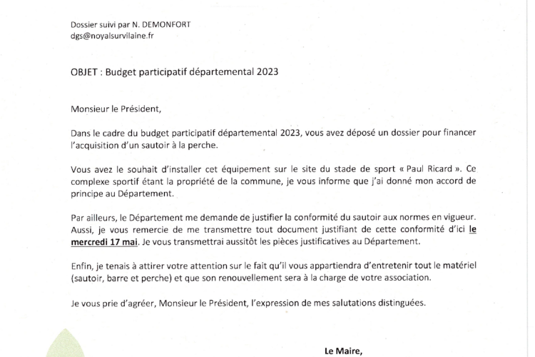 Courrier accord de la mairie de Noyal Sur Vilaine
